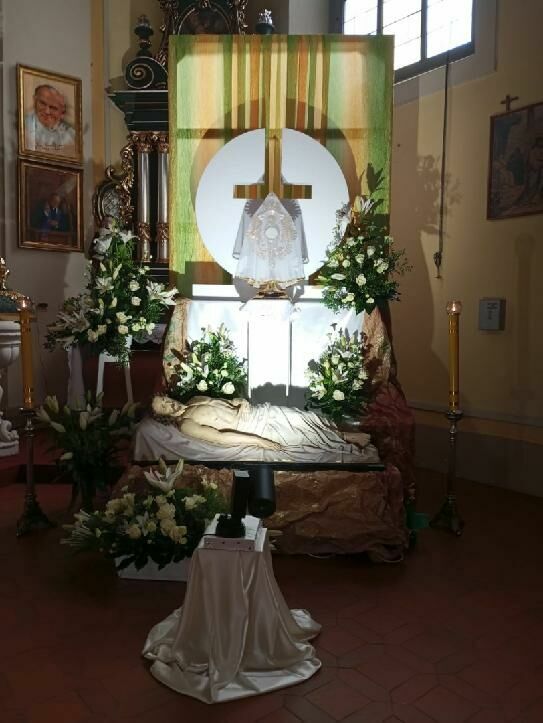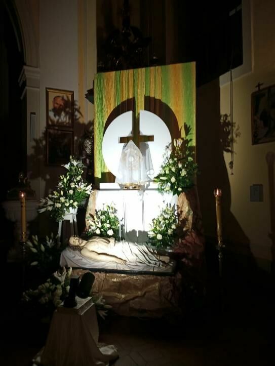 Przedmiotem sprzedaży jest krzyż w kole z podstawą, stanowi on oryginalną propozycję tła do wykonania dekoracji grobu Pańskiego.średnica koła - 100 cm