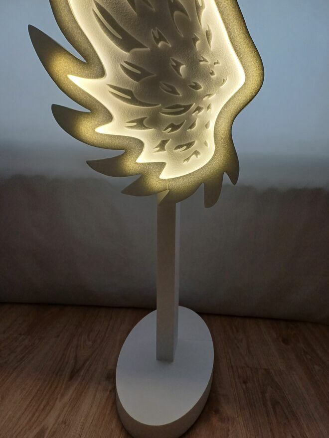 Dodatkowym plusem jest ustawienie skrzydeł w dowolnym miejscu ( nie tylko na ścianie ) i na dowolnej wysokości, a niewątpliwym atutem przyciągającym wzrok jest podświetlenie ledowe.